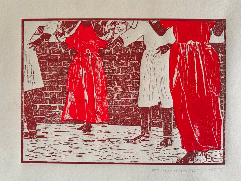 Miora Acker is a Franco-Malagasy contemporary artist from Madagascar. She studied fine arts at Atelier Clouet and Visual Communication at ESAT in Paris. Her practice focuses on the exploration of the mediums of acrylic painting and linoprinting expressed in a socio-figurative style. Images and words are some of the elements the artist chooses to work with.