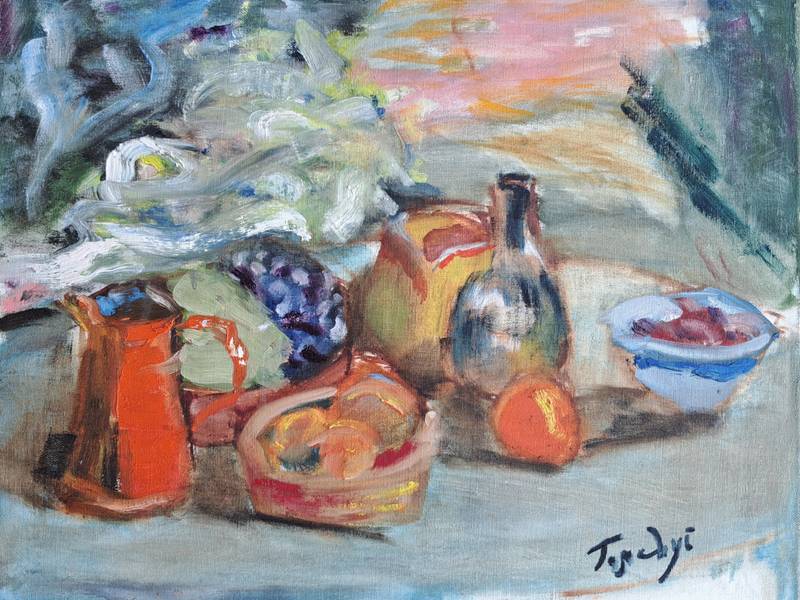 Still life with a blue tablecloth