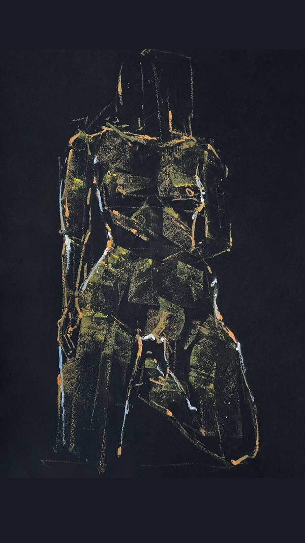 The series BLACK PASTELS are experiments with body research. Each work is created in the format of 15-minute nude sketches, written both during personal posing of models in the artist's studio, and at public drawing sessions in galleries in Kyiv and Lviv. The series was born in 2022, after the full-scale invasion of Russia. At first, it was a way for the artist to distract himself and continue his artistic practice, because working in the usual mode with intellectual concepts was impossible both for moral and willpower reasons.In order not to slip into the situation and remain honest with himself, the artist decided to focus on expression and work with nature, which later resulted in a full-fledged series, which now includes more than 100 works.